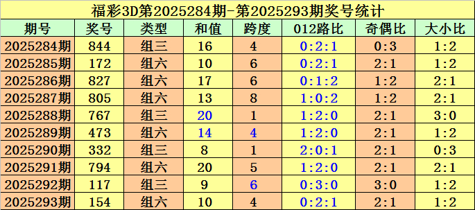 012路分析:上期012路比0:2:1,上期0路号码轮空,本期重防回补,看好2路号码走冷,012比参考2:1:0。