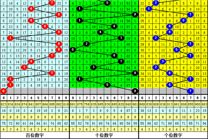 百位分析:上期开出1重号,本期该位下跌,参考号码0。